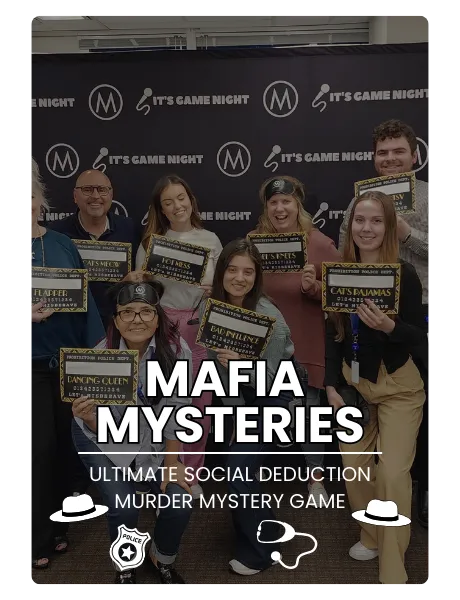 As you step into the it's game night arena, when your team arrives they will be split up into teams. Those teams will then face off in head to head game night battles. teams will be playing an assortment of party game challenges that consist of logic, guessing, knowledge, physical, strategy and more.